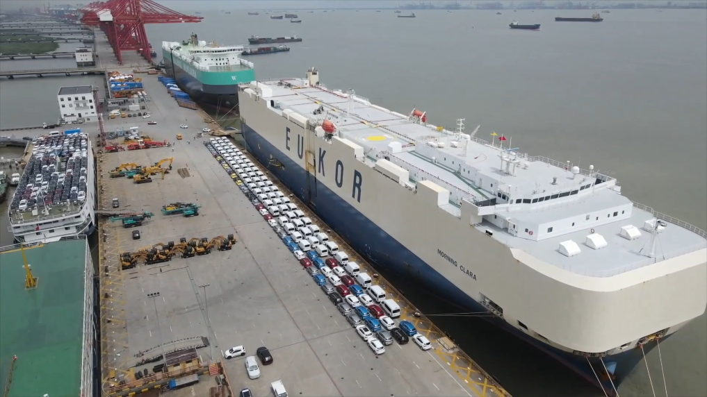 上海的外高桥海通码头看起来“平平无奇”,但2023年,有超过百万辆中国制造汽车从这里启程,走向100多个国家和地区。向欧美、走高端、新能源,作为中国汽车出口的第一大口岸城市,上海正在打出一张中国制造提质升级的出口“金名片”。