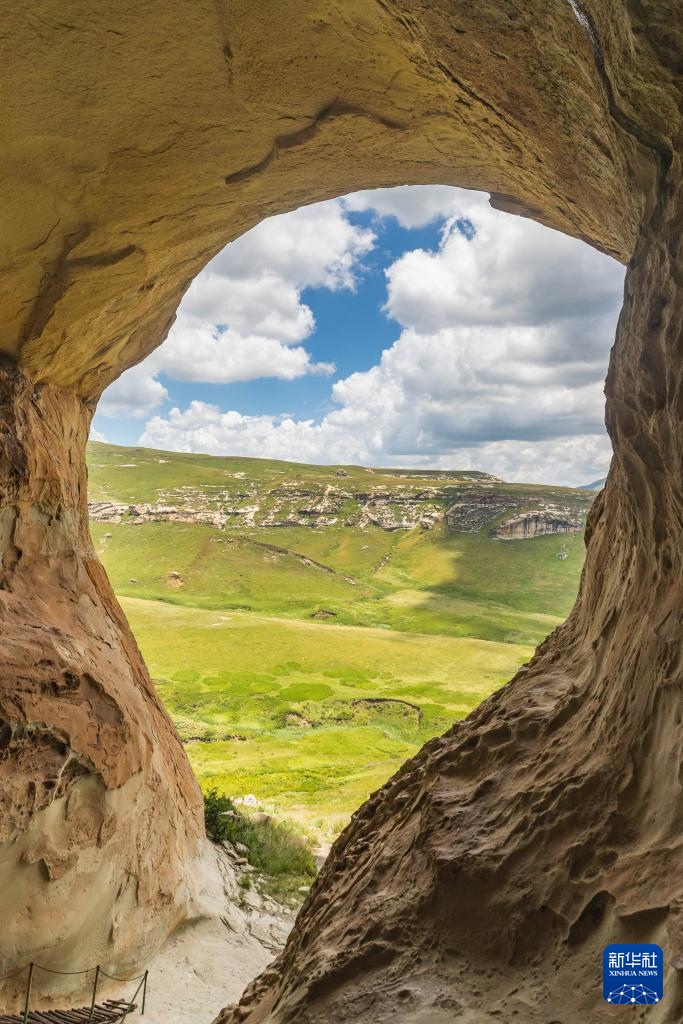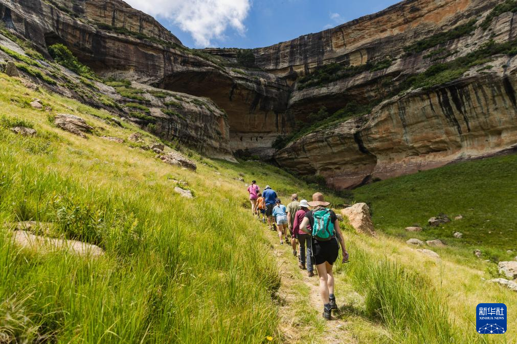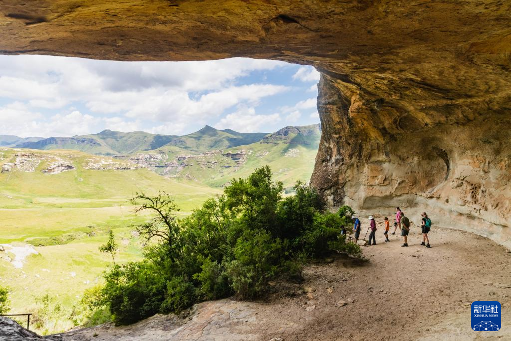1月14日,游客在南非金门高地国家公园一处岩洞内游览。