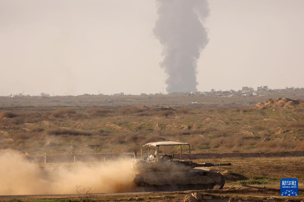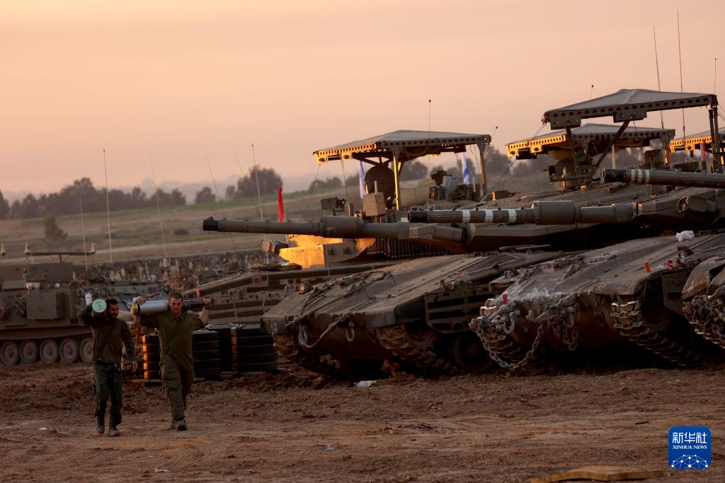 这是1月21日在加沙边境以色列一侧拍摄的的以军部队。