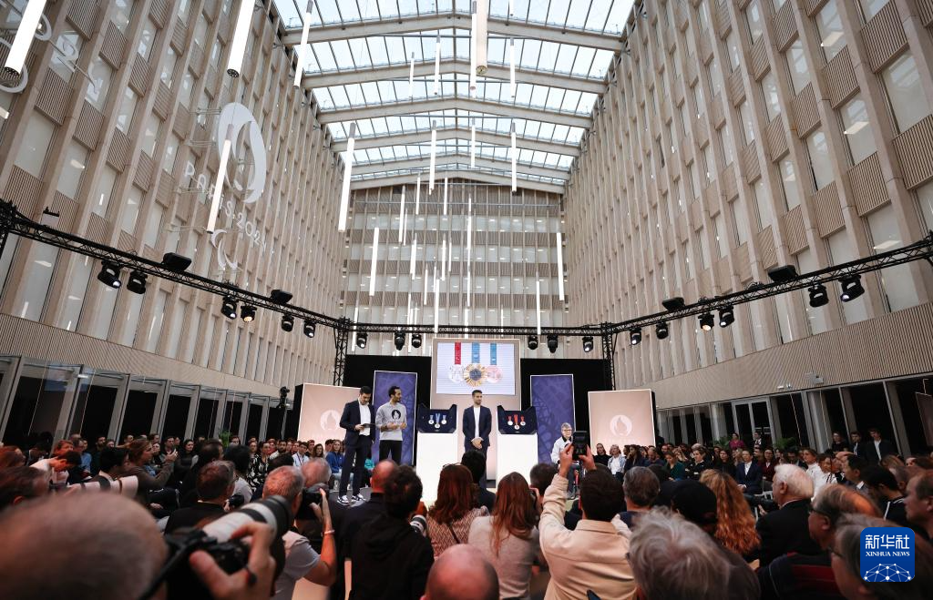 这是2月8日在发布现场拍摄的巴黎残奥会奖牌。