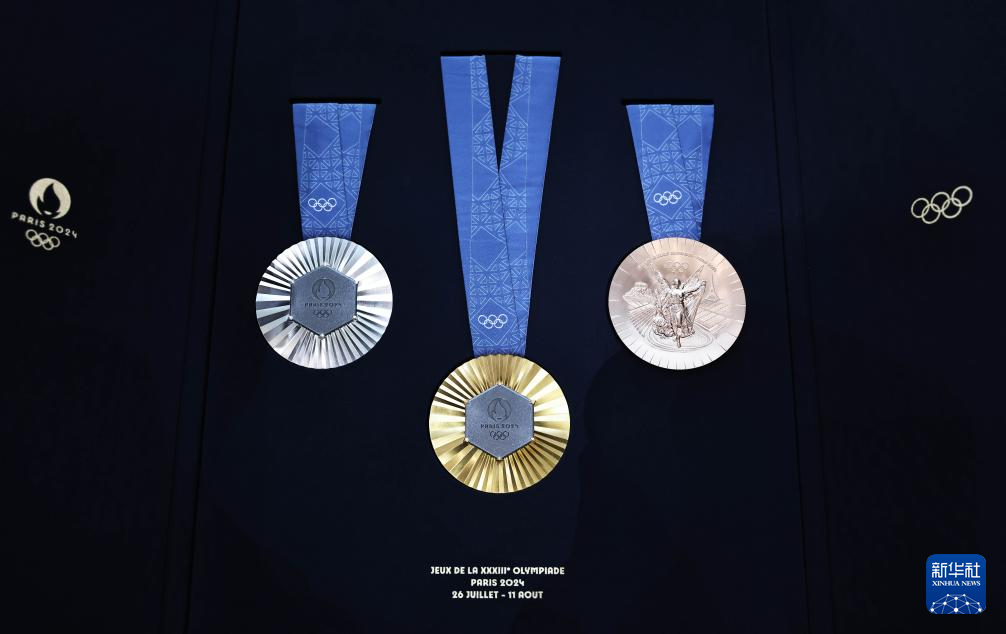 这是2月8日在发布现场拍摄的巴黎奥运会奖牌。