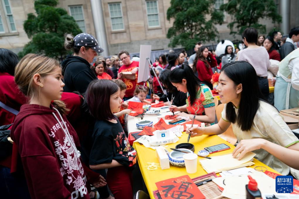 2月10日,在美国华盛顿史密森学会美国艺术博物馆举行的“欢乐春节”家庭日活动上,工作人员为观众书写春联。