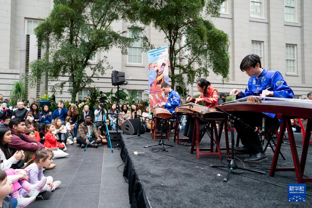 2月10日,在美国华盛顿史密森学会美国艺术博物馆举行的“欢乐春节”家庭日活动上,演员弹奏古筝。