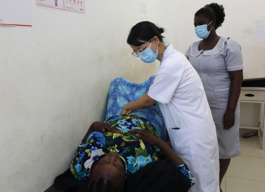 2023年2月27日,在塞拉利昂首都弗里敦,一名中国医疗队的医生正在为患者检查身体。