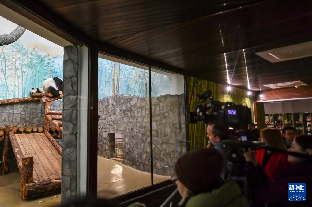 3月8日,人们在俄罗斯莫斯科动物园观看大熊猫“喀秋莎”(左)和妈妈“丁丁”。新华社记者 曹阳 摄
