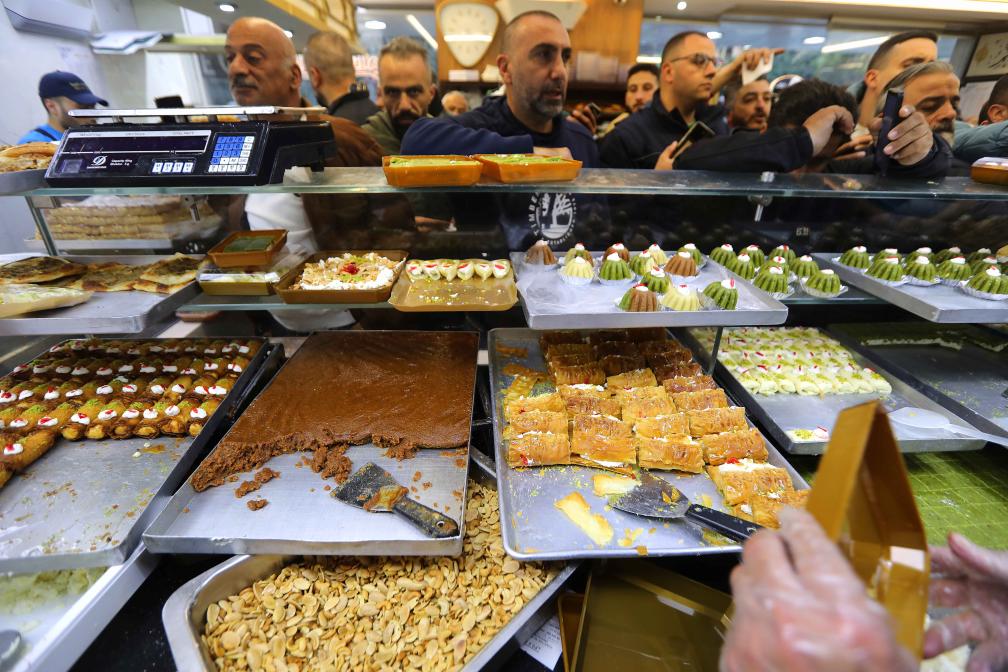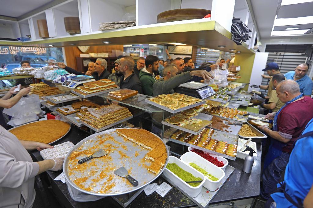 3月11日,在黎巴嫩贝鲁特,人们在商店购买甜点。