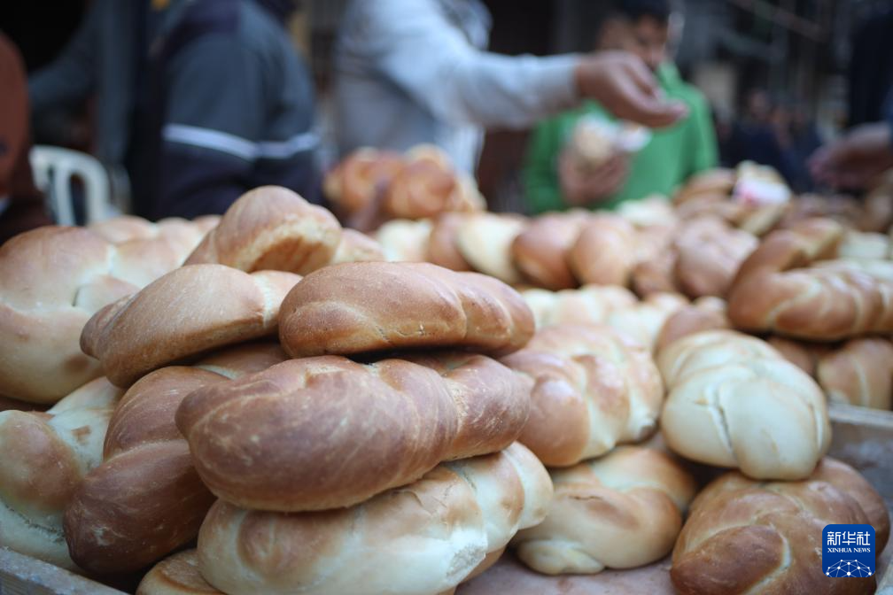 这是3月11日在加沙地带中部一个市场拍摄的待售的食物。