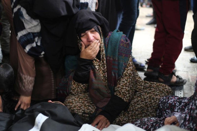 3月19日,在加沙地带南部城市拉法,巴勒斯坦人悼念死于以军轰炸的遇难者。新华社发(哈立德·奥马尔摄)