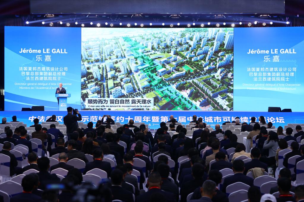 当日,中法武汉生态示范城签约十周年暨第七届中法城市可持续发展论坛在武汉举办。500余名中外嘉宾汇聚一堂,探讨应对全球气候变化和推动城市可持续发展这一人类共同课题。