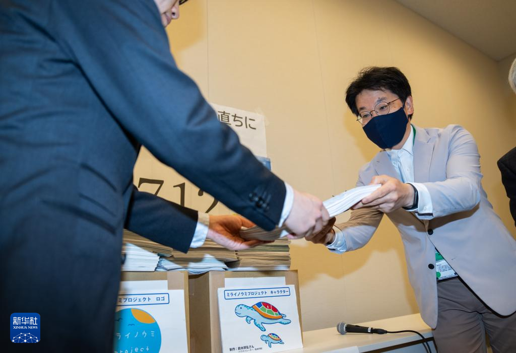 日本非营利组织代表24日向日本政府递交184712位民众的签名,呼吁政府和东京电力公司立刻停止向海洋排放福岛第一核电站的核污染水。