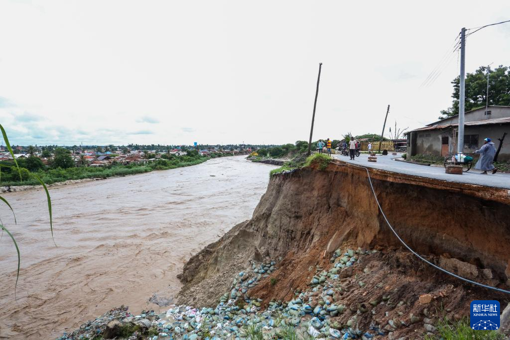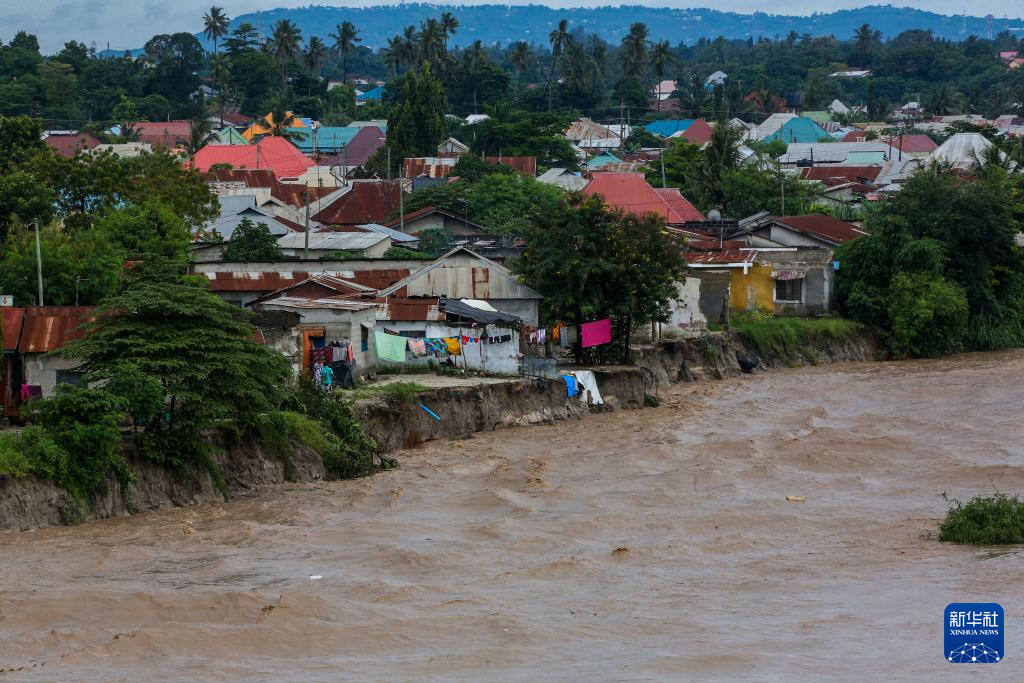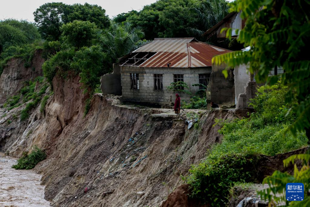 这是4月24日在坦桑尼亚达累斯萨拉姆郊区拍摄的持续降雨引发的河道滑坡。