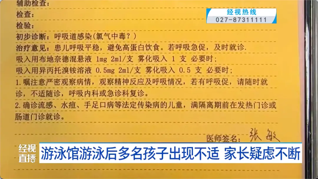 武汉市武昌区文化和体育局体育科 工作人员:“卫生部门对水质进行了抽样和检测,检测的结果没有问题的,没有超标。我也看了几个孩子的病历,也没有说因为氯气超标,只是说了支气管炎什么的,所以说不好断定到底是不是因为(氯超标)这个问题。”