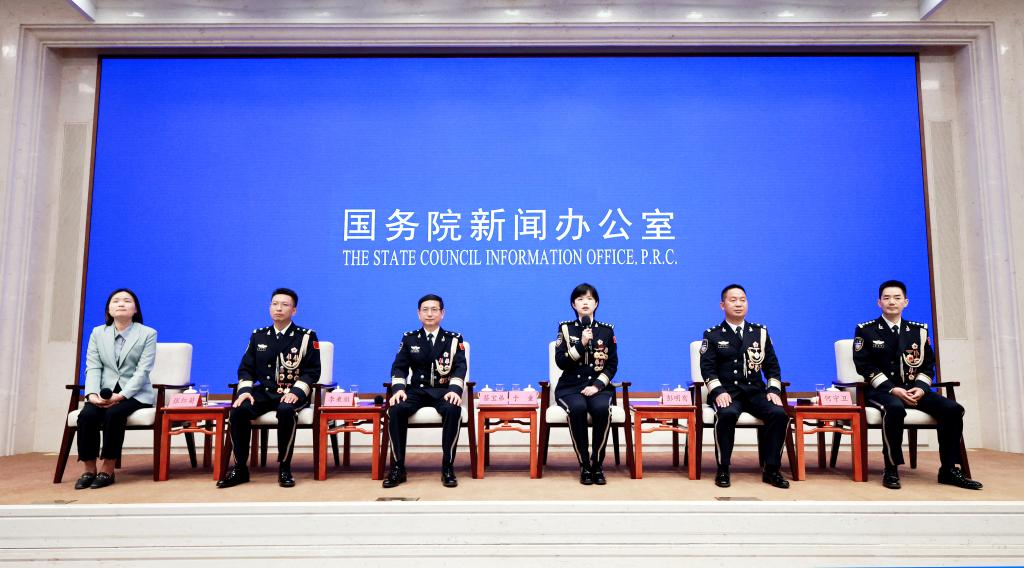 6月11日,国务院新闻办公室在北京举行“新征程上的奋斗者”中外记者见面会,移民管理领域代表围绕“守护国门边境 服务开放发展”与中外记者见面交流。新华社记者 潘旭 摄