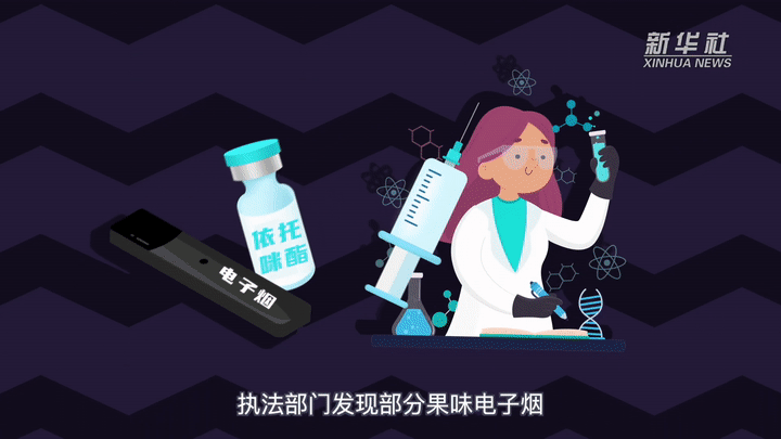 执法部门发现部分果味电子烟被添加了“依托咪酯”等毒品成分,吸食后会产生幻觉,成为青少年沾染毒品的“跳板”。