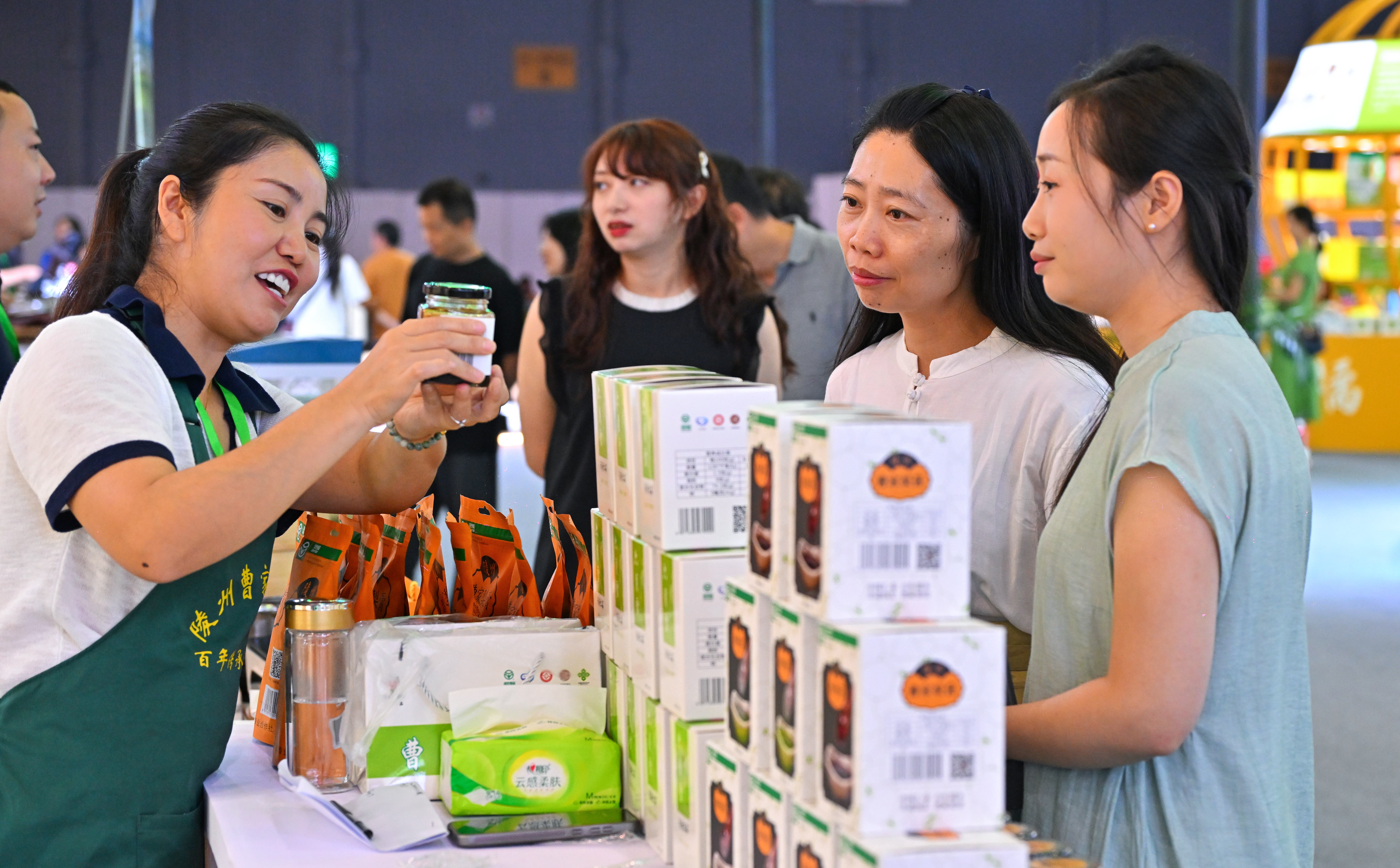 “味道特别好。”展会上备受关注的还有作为市级非物质文化遗产的曹家梨膏。正在品尝梨膏的游客郑华昕表示,每年秋天她都会熬制梨膏,没想到现场品尝之后发现这款梨膏比自己熬的纯度和口感更好,现场就购买了10盒,还与工作人员互加了微信方便下次购买。