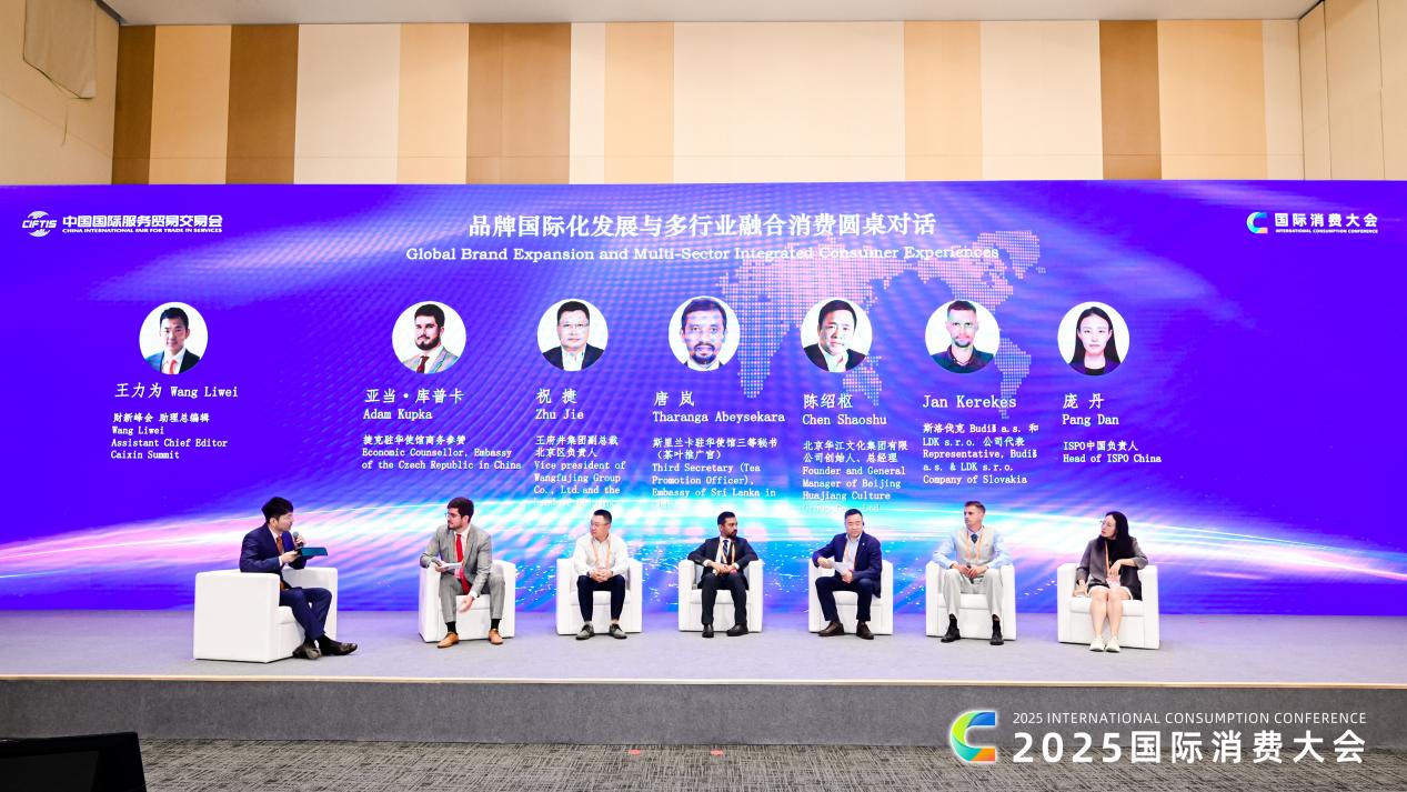 在“品牌国际化发展与多行业融合消费”圆桌对话环节,捷克驻华使馆商务参赞亚当·库普卡、王府井集团副总裁祝捷、ISPO中国负责人庞丹等围绕“如何推动品牌国际化布局”和“多元融合如何激活消费潜力”话题进行了深入探讨。
