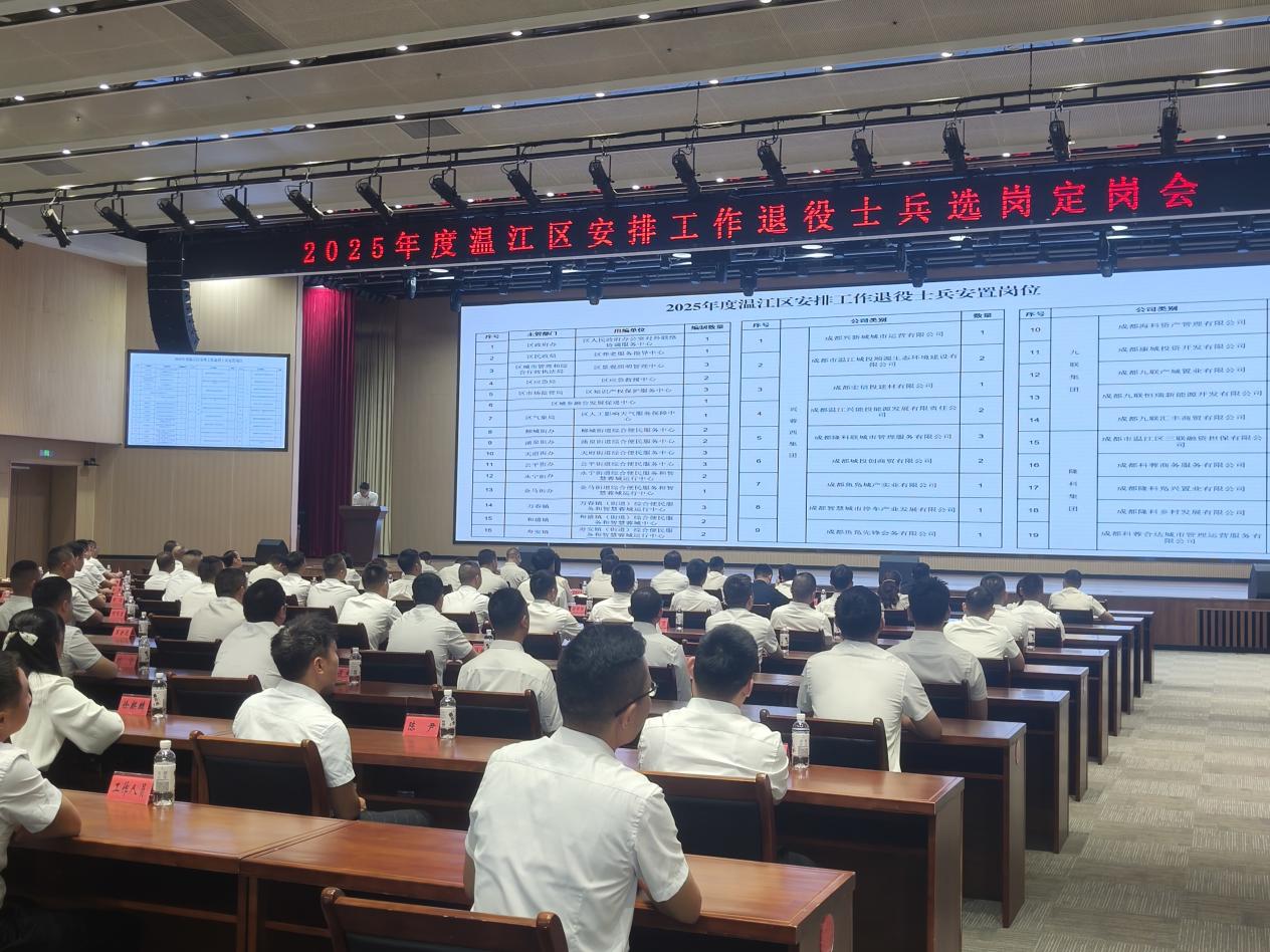 9月19日,2025年度温江区安排工作退役士兵选岗定岗会议在温江区委党校二楼鱼凫厅会议室举行。会议在温江区纪委监委全程监督下进行,区委编办、区人社局、区国资局等多家单位分管负责同志及各接收安置单位代表参会,共同见证今年符合政府安排工作条件的退役士兵完成岗位选择。