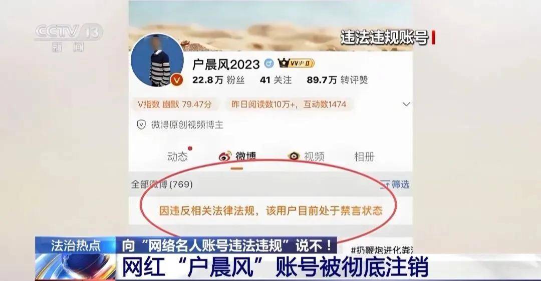 实际上,从展示跨国消费差异到制造阶层对立,户晨风以“苹果、安卓论”收割流量,该账号因突破监管红线被封禁,多平台账号被彻底注销。