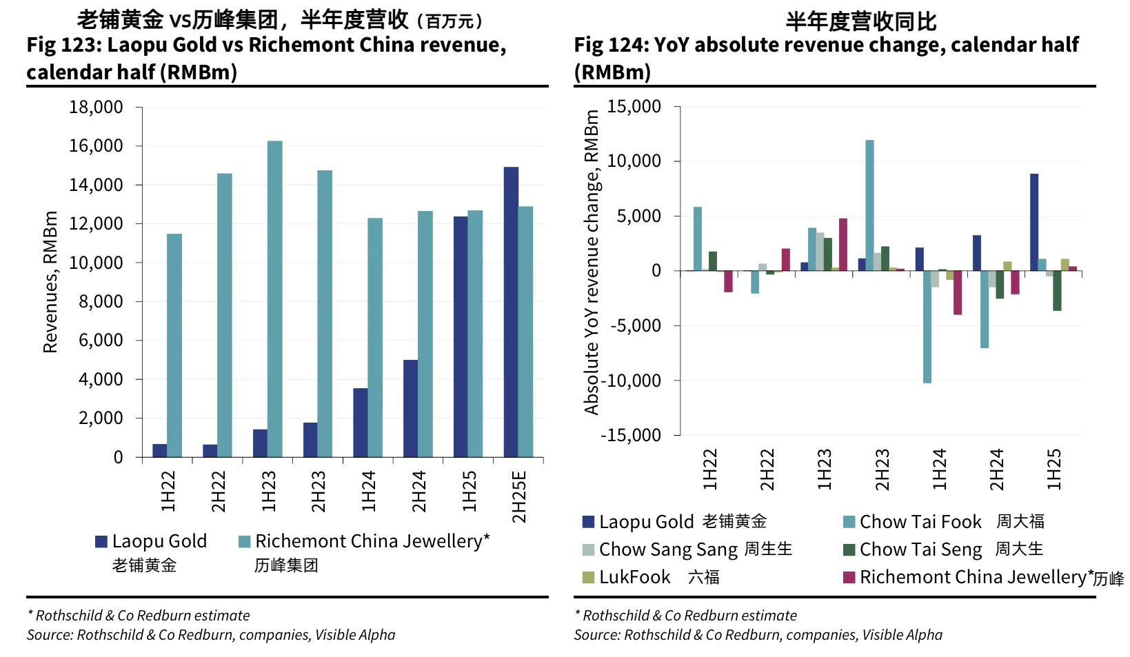 总部位于瑞士的历峰集团(Richemont)是世界三大奢侈品集团之一,与LVMH(路威酩轩)集团和开云集团(Kering)并列。罗斯柴尔德的报告显示:历峰集团旗下的珠宝业务包括卡地亚、梵克雅宝、布契拉提等品牌,但2025年在中国市场的业绩总和不及一个老铺黄金。