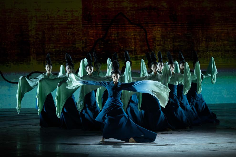 7月18日,演员在舞蹈诗剧《只此青绿》中表演。新华社记者张金加 摄