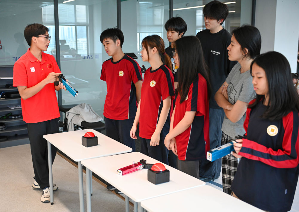 ↑图为学生们在广州市中黄港澳子弟学校运动室进行射击训练(6月19日摄)。新华社记者 肖恩楠 摄