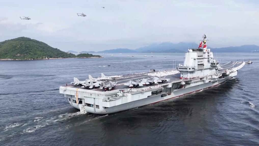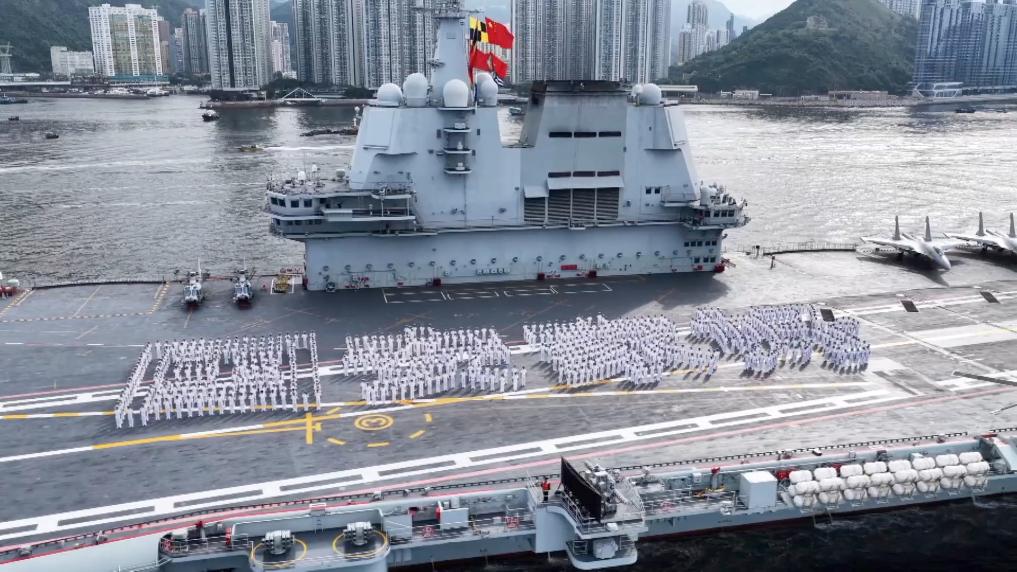 在香港回归祖国28周年之际,由中国人民解放军海军航空母舰山东舰,导弹驱逐舰延安舰、湛江舰及导弹护卫舰运城舰组成的航母编队,携多型舰载战斗机、直升机和陆战队员,于3日上午抵达香港特别行政区,开启为期5天的访问活动。香港特别行政区政府在昂船洲军营为舰艇编队访港举行隆重欢迎仪式。
