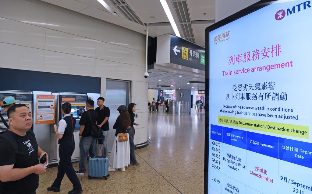 香港铁路有限公司(港铁)宣布,23日晚6时前部分来往香港西九龙站及内地站点的高铁列车班次将会取消。23日晚6时后至24日全天,所有来往香港西九龙站及内地站点的高铁列车班次将会取消。