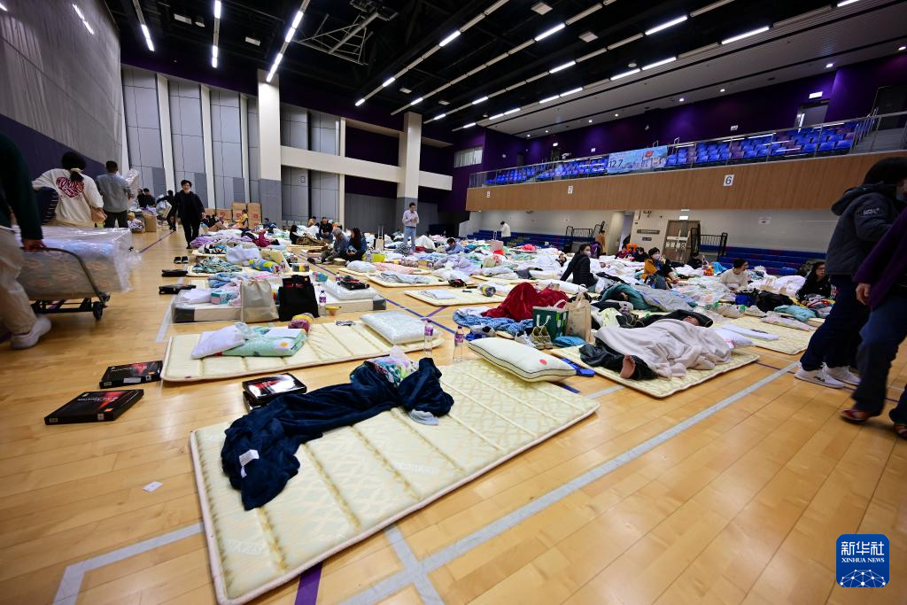 11月27日凌晨拍摄的香港大埔屋邨宏福苑火灾现场附近一处临时庇护中心。新华社记者 朱炜 摄