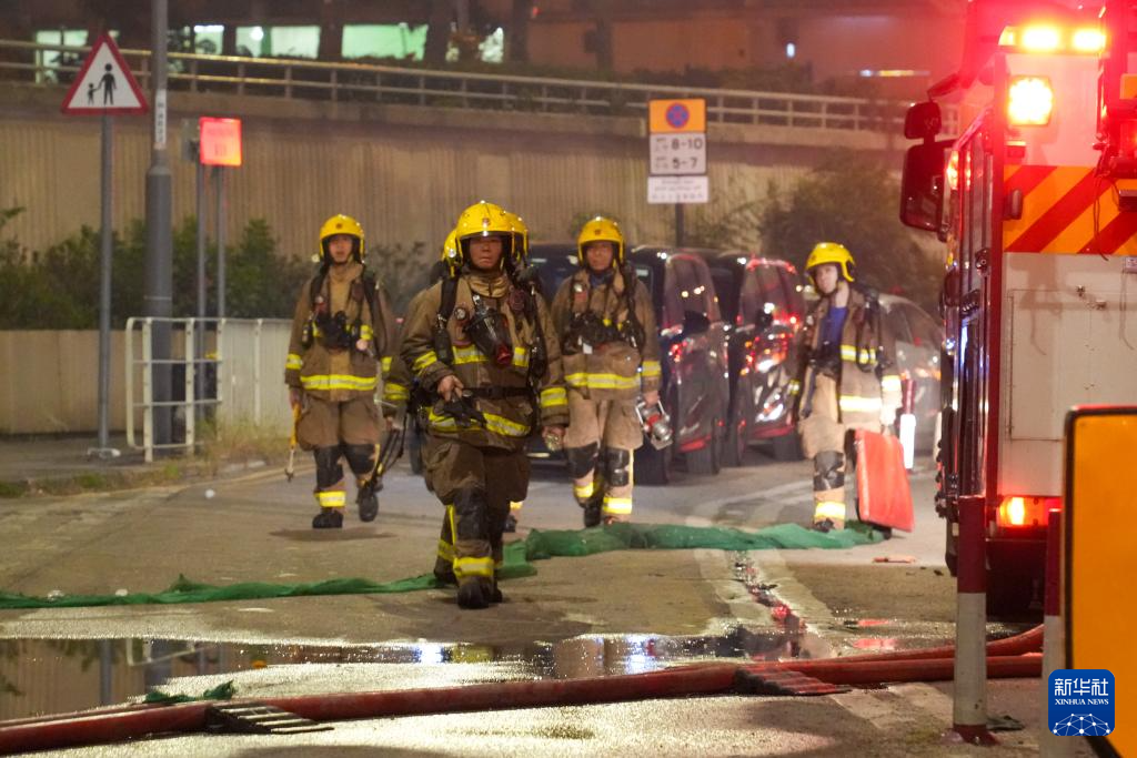11月27日凌晨拍摄的香港大埔屋邨宏福苑火灾救援现场。新华社记者 朱炜 摄