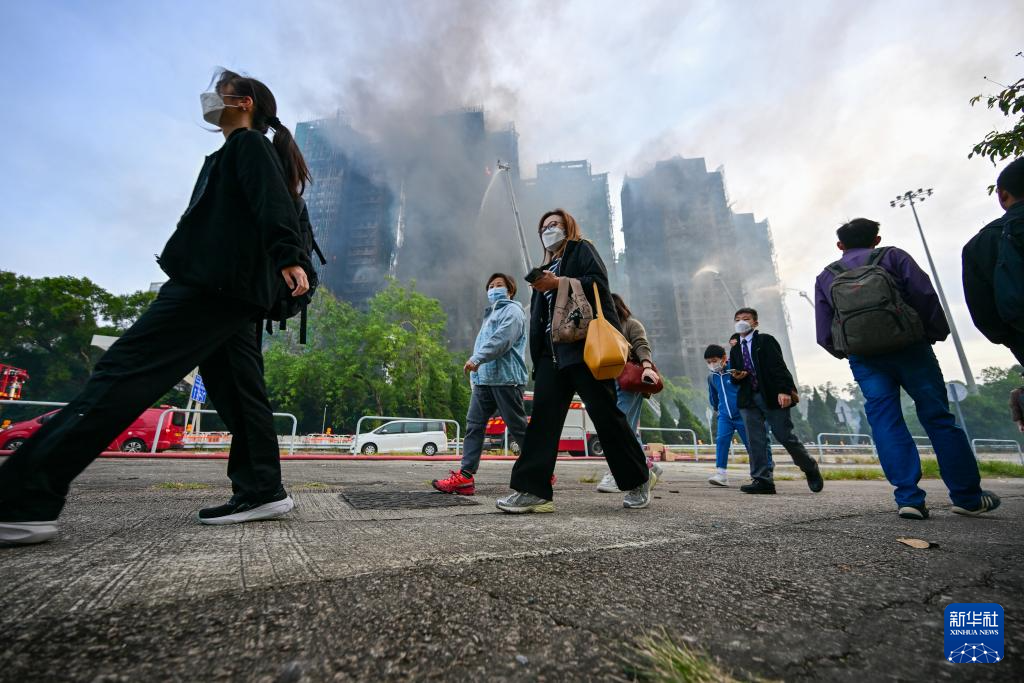 11月27日,行人从香港大埔屋邨宏福苑火灾现场附近走过。新华社记者 朱炜 摄
